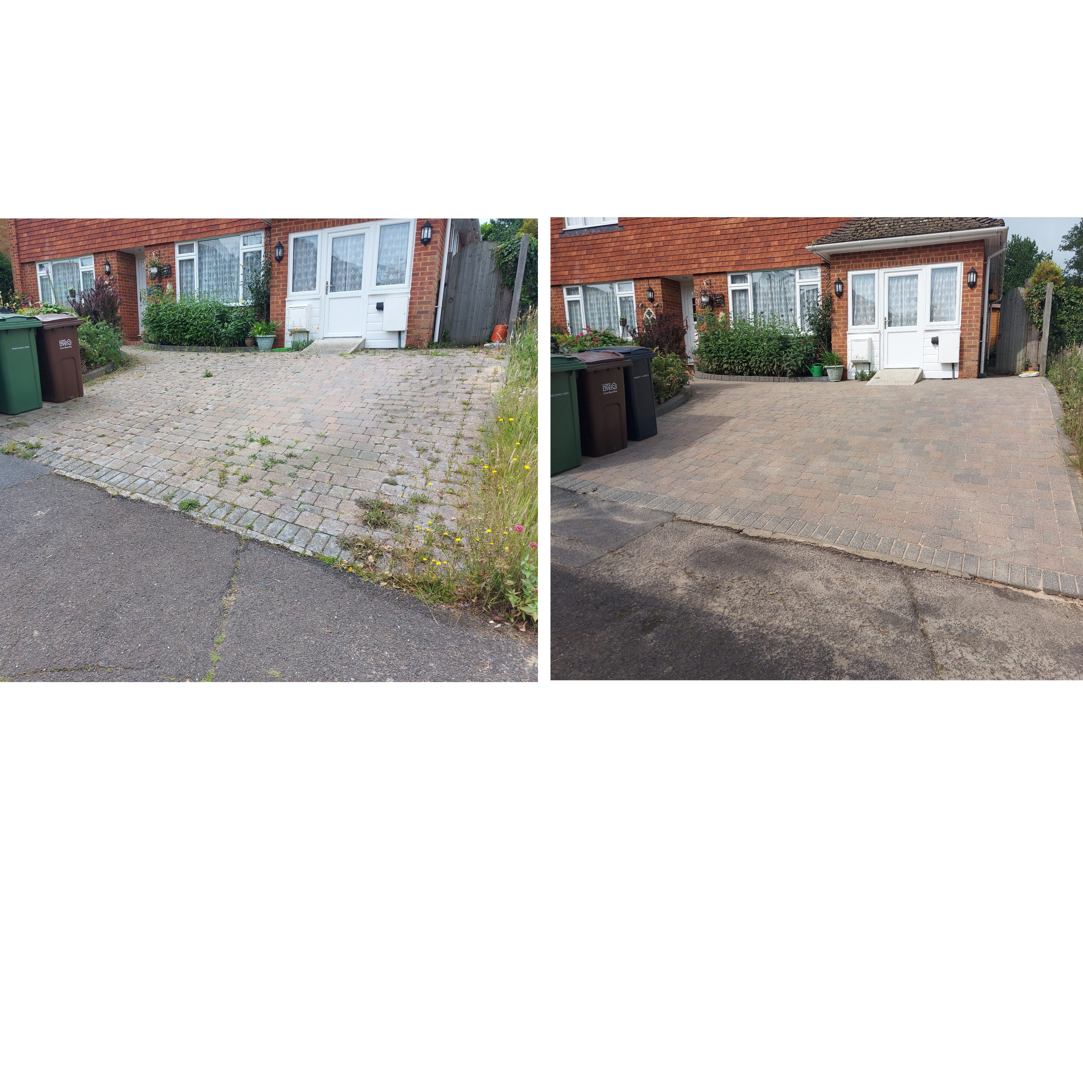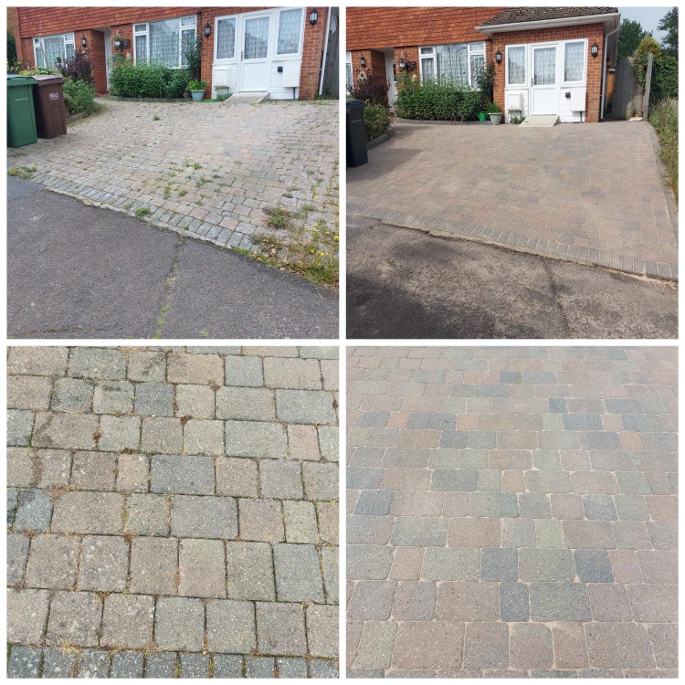 Due to the UK climate block paving can become infested with weeds, algae, lichen and moss. I can clean and restore using my profesional high power pressure washer and I always re-sand the blocks after with kiln dried sand to complete the job properly.
